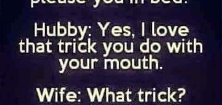 Hubby: Yes, I love that trick you do with your mouth. Wife: What trick? Hubby: The one where you shut the fuck up and go to sleep.