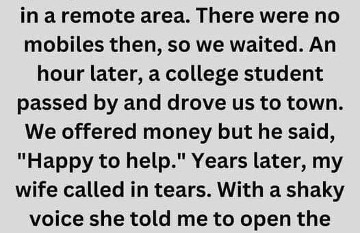 My wife and I were returning from a party at 2 AM when our car broke down in a remote area. With no mobiles, we waited until a college student offered us a ride...